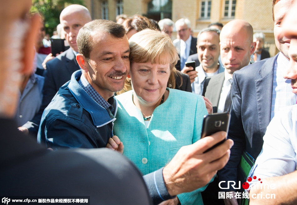 德国总理默克尔慰问抵德难民 玩自拍秀亲民(高清组图)