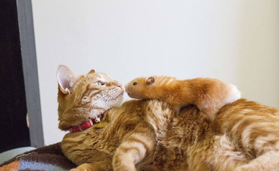 2015年9月10日报道(具体拍摄时间不详),一只可爱的小仓鼠最喜欢玩换装游戏,以及跟它最要好的朋友——一只猫咪一起玩耍。