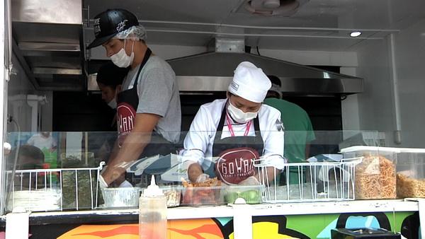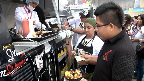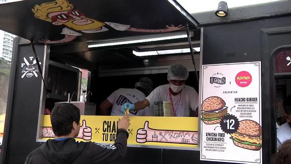 为了鼓励年轻人自主创业,主办美食节的秘鲁烹饪联合会首次邀请街头快餐车参与今年的美食文化交流活动。街头快餐车分布在美食节南、北两个区域内。赤、橙、蓝、绿、黑……为吸引食客,每个快餐车都被装点得鲜艳醒目,有的甚至从车身彩绘的图案就知道其主打的创意美食。