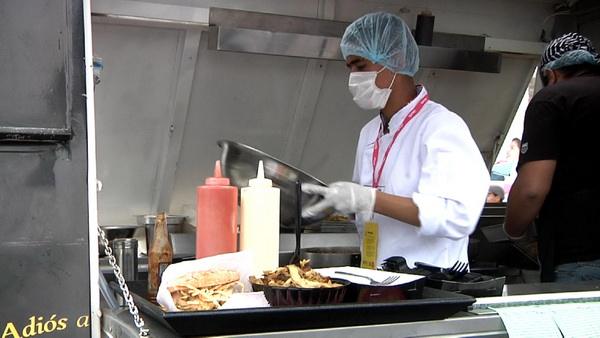 小伙子名叫马丁·米奥里,是秘鲁街头快餐车协会会员。他说,街头快餐车早已风靡美国各大城市,但在秘鲁才刚刚起步,经营快餐车的大多数是年轻人,他们有创业的志向,却没有太多的资本,而快餐车成本较低,又不需要交固定租金,少了许多负担。
