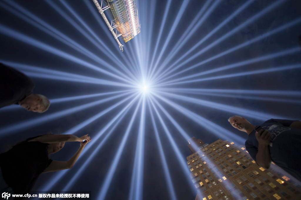 组图:9·11恐怖袭击14周年 纪念之光照亮纽约夜空