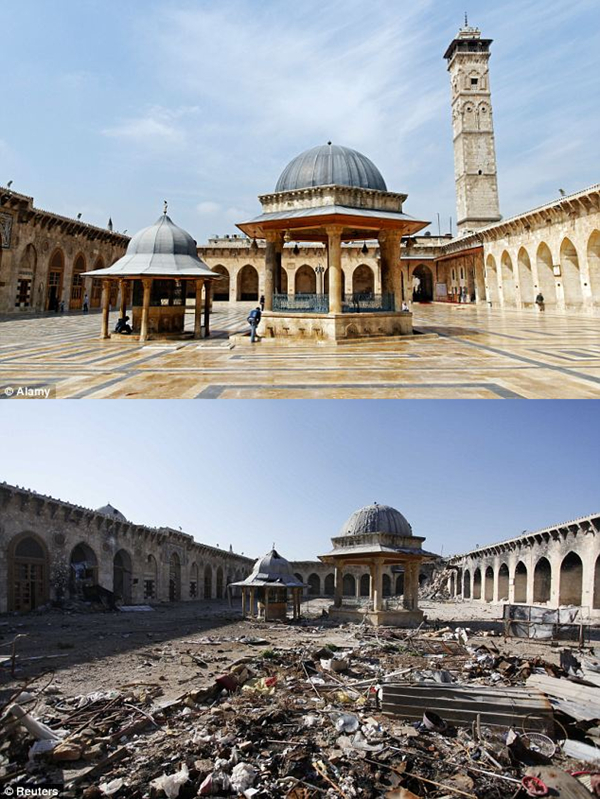 图为战争对叙利亚古城阿勒颇造成的破坏。2004年的人口普查显示,阿勒颇拥有231万人口,比叙利亚首都大马士革还多。该城是人类最古老的定居点之一,考古学发现在公元前第11个千年时这里就有人居住。