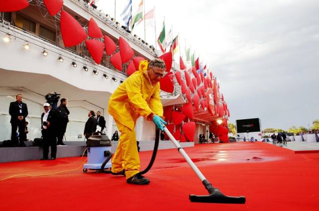 威尼斯电影节上还有一群人,他们用汗水和热情默默地为电影节辛苦付出。保安安德烈·塔迪奥已经为15届电影节服务。他每天要工作10个小时,从来没看过一场电影。对他来说,今年的电影节比往常推迟了几天,气温不高,工作也就没往年辛苦了。