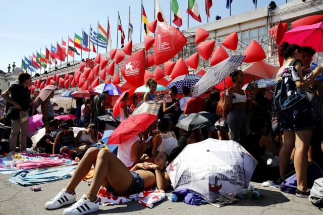 ↑9月4日,炎炎烈日中,粉丝正在红毯旁守候明星的到来。新华社记者叶平凡摄