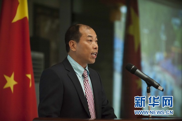 中国驻希腊大使邹肖力11日在中国驻希腊大使馆举行纪念中国人民抗日战争暨世界反法西斯战争胜利70周年招待会,希腊各界友好人士、旅希华人华侨代表及中资企业代表数十人参加招待会。图为希腊《中希时报》社社长吴海龙在招待会上致辞。新华社记者刘咏秋 摄