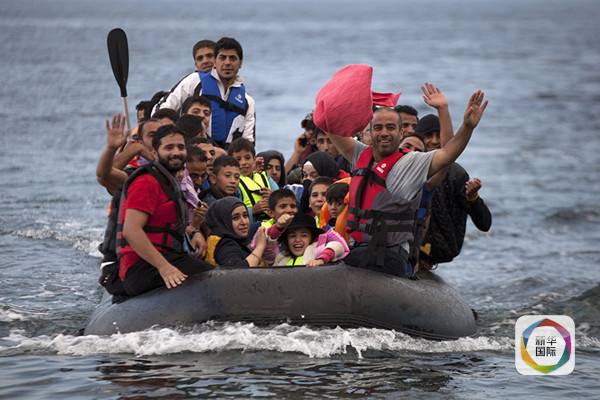 2015年9月10日,难民乘坐小艇到达希腊的莱斯沃斯岛。