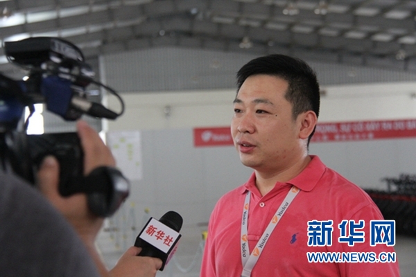 雅迪电动车越南工厂负责人吕刚接受新华社记者采访。雅迪电动车于2014年7月入驻越南首都河内章美县的富义工业园区,目前月生产量为12000台。新华社记者乐艳娜 摄