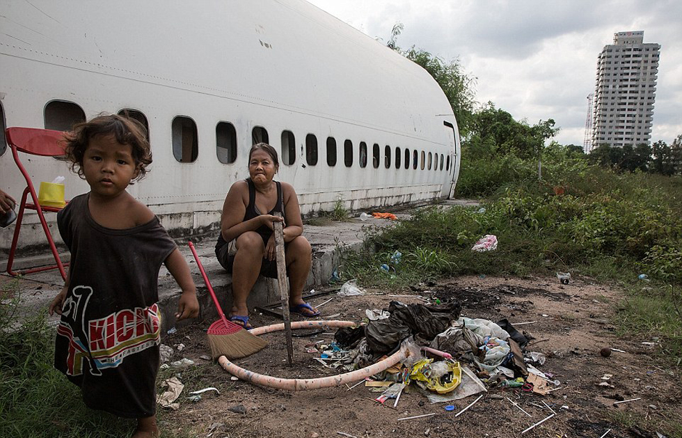 国际在线专稿:据英国《每日邮报》9月13日报道,在泰国首都曼谷郊区,有一个荒废的飞机停放场地,这里已经成为许多流浪贫民家庭赖以生活的临时家园。这些人只能以收集和回收垃圾、废旧金属为生,每天仅赚几美元养家糊口。(杨柳)