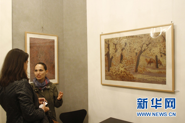 市民在观赏何立宏作品。新华社发(佩特雷斯库摄)