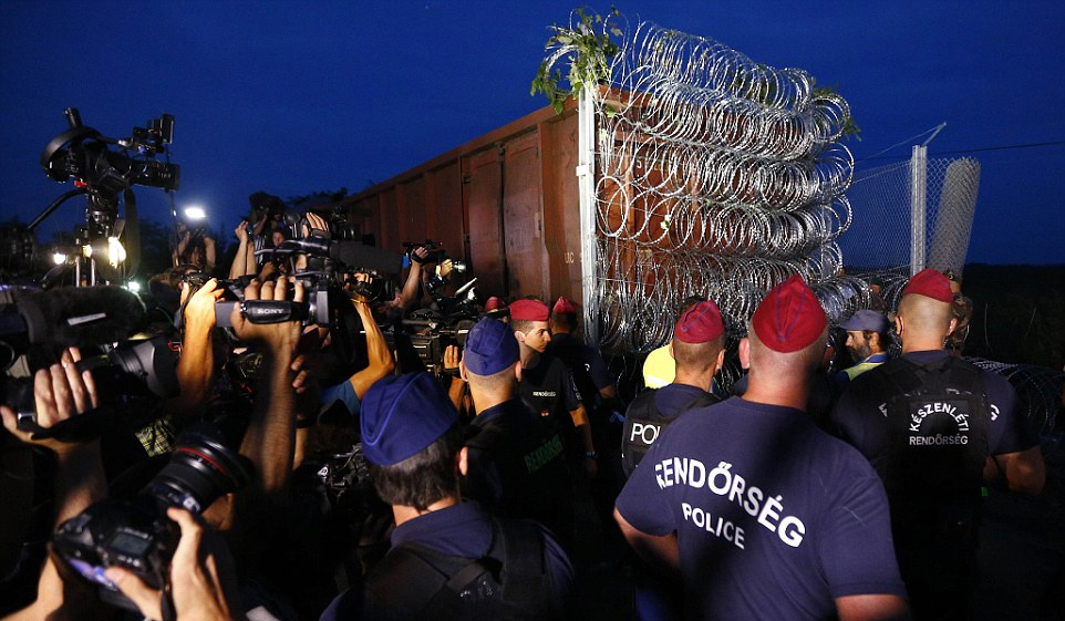 匈牙利警方正守护这个地方,携带铁丝网的铁路货车将到达这里,并用铁丝网封锁塞尔维亚和匈牙利边境。