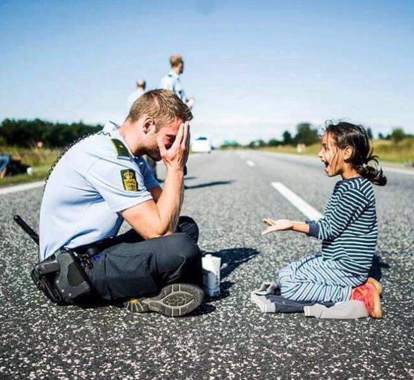 丹麦警察与叙利亚小女孩玩游戏感动网友(组图)