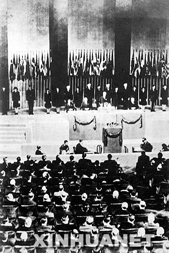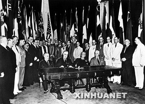 这是1942年1月1日,中、美、英、苏等26国代表在华盛顿签署《联合国宣言》。 新华社发