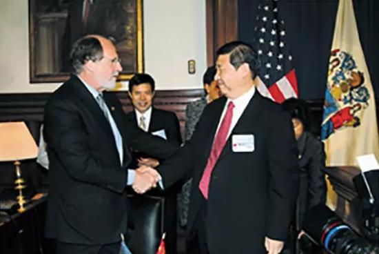 △ 2006年5月,时任浙江省委书记习近平在新泽西州首府特伦顿拜会州长克辛。