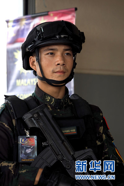 9月18日,中国特种兵在“和平友谊-2015”中马实兵联合演习开始仪式上亮相。当日,“和平友谊-2015”中马实兵联合演习在马来西亚雪兰莪州梳邦机场举行开始仪式。 新华社发(江山摄)