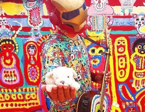 每天早上九点到傍晚六点,你都可以在彩虹眷村听到他的歌声、看到他身着战袍的身影。(够台湾旅人工作室)