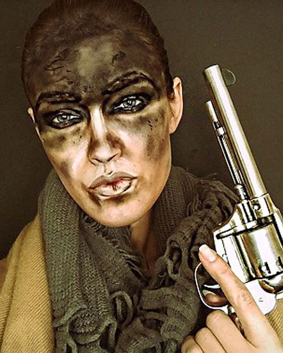 她变身电影《疯狂的麦克斯》中的角色,相似度让人惊叹。(网页截图)