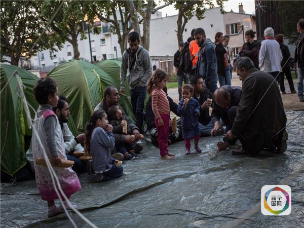 上图为9月13日法国街头的难民。新华社夏威尔·德·托雷斯摄。