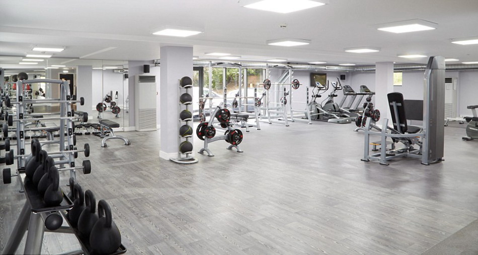 设施齐全的健身房配有跑步机、赛艇以及自行车等,同时还有自由调节重量的器材。