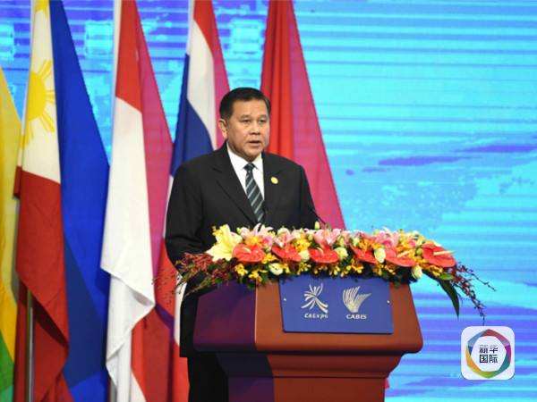 图为9月18日,泰国总理特使、副总理塔纳萨在第12届中国-东盟博览会开幕式上致辞(新华社照片)