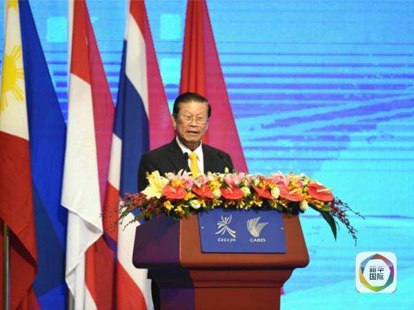 图为9月18日,老挝副总理宋沙瓦在第12届中国-东盟博览会开幕式上致辞(新华社照片)
