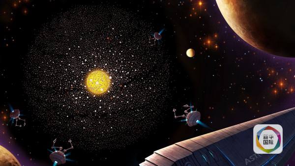 要做到这一点,就必须有一个“戴森球”,这是弗里曼·戴森(Freeman Dyson)发展出的一个概念,即能够用大量设备将一颗恒星像球那样包裹起来,以尽可能的接受其发出的能量。上图就是艺术家想象创作出的“戴森球”示意图。