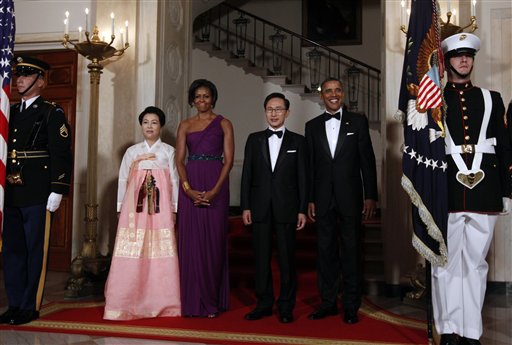 2011年10月,白宫款待(时任)韩国总统李明博和夫人
