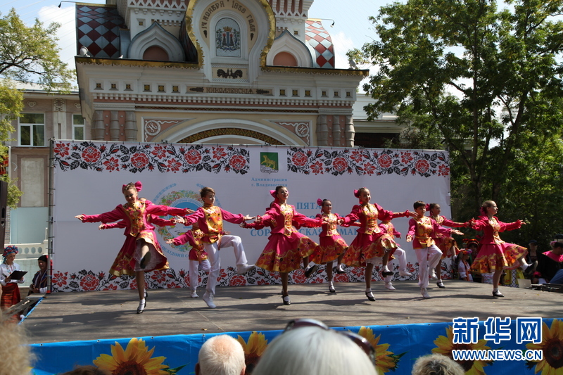 9月20日,俄远东符拉迪沃斯托克,第5届乌克兰文化节在海军上将花园举行。来自滨海边疆区各地乌克兰人展出了各种传统工艺品。此外,十多个艺术团体举行乌克兰歌唱舞蹈等精彩表演。新华社发(隋东旭摄)