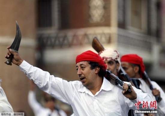 原标题:组图:也门胡塞武装跳战舞 庆祝夺取首都萨那一周年