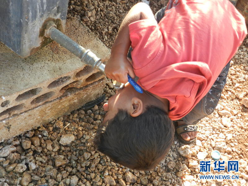 宰牲节前夕,在黎巴嫩南部马家永地区一叙利亚难民营,一小难民直接从水管里饮用凉水。新华社发(塔希尔摄)