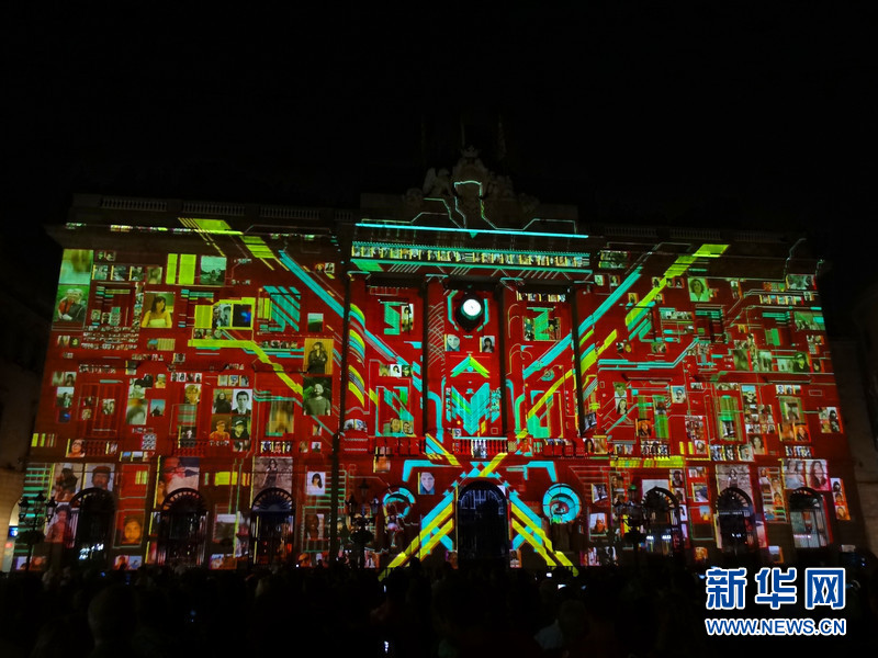2015年圣梅尔塞节期间,巴塞罗那市政府大楼晚间的投影表演。新华社记者周喆 摄