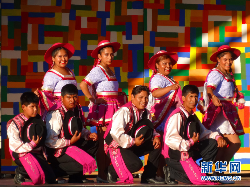 2015年圣梅尔塞节期间,巴塞罗那市中心的加泰罗尼亚广场,一群来自玻利维亚的演员在台上表演。新华社记者周喆 摄