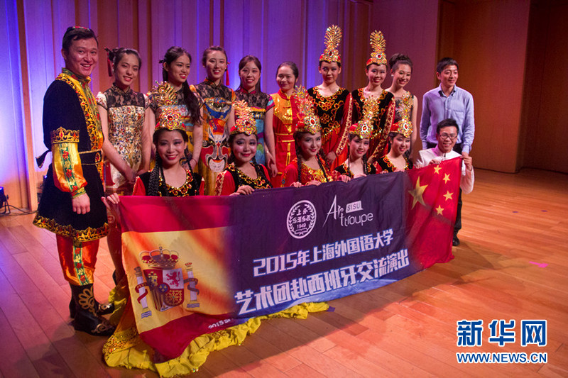 2015年圣梅尔塞节期间,上海外国语大学艺术团在巴塞罗那演出。新华社记者周喆 摄