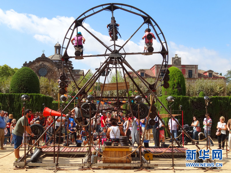 2015年圣梅尔塞节期间,巴塞罗那城堡公园里临时搭建的儿童游乐园。新华社记者周喆 摄