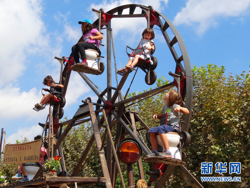 2015年圣梅尔塞节期间,巴塞罗那城堡公园里临时搭建的儿童游乐园。新华社记者周喆 摄