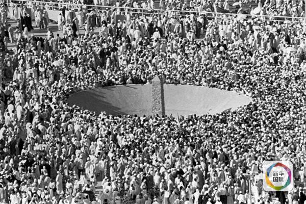 1998年4月9日,米纳桥发生严重踩踏,造成119名朝觐者死亡,180多人受伤。图为 4月8日,十多万名穆斯林朝觐者在麦加城外的米纳山顶举行抛石仪式。