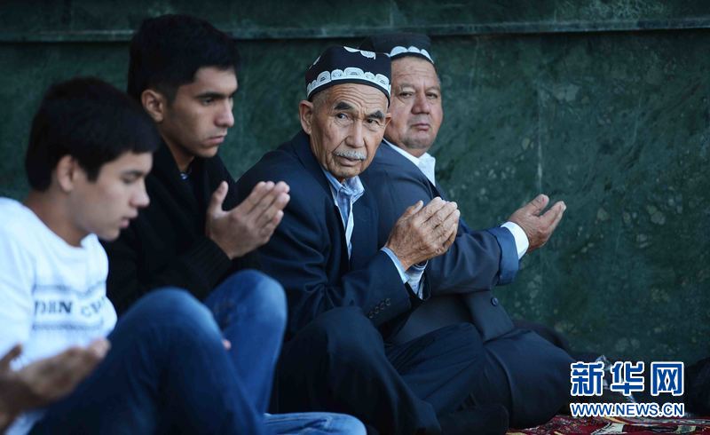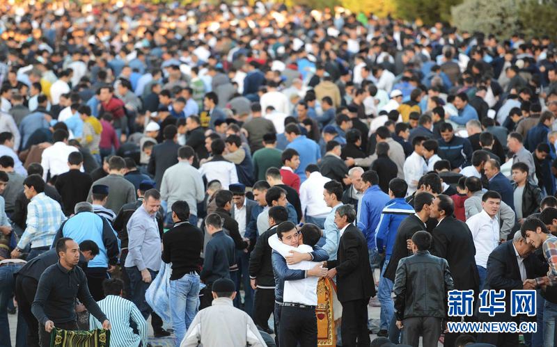9月24日,在乌兹别克斯坦首都塔什干哈斯特·伊玛姆建筑群清真寺广场,人们参加古尔邦节礼拜。当天,乌兹别克斯坦各地庆祝伊斯兰教传统节日古尔邦节。“古尔邦节”亦称“宰牲节”,是伊斯兰教三大节日之一。 新华社记者沙达提 摄