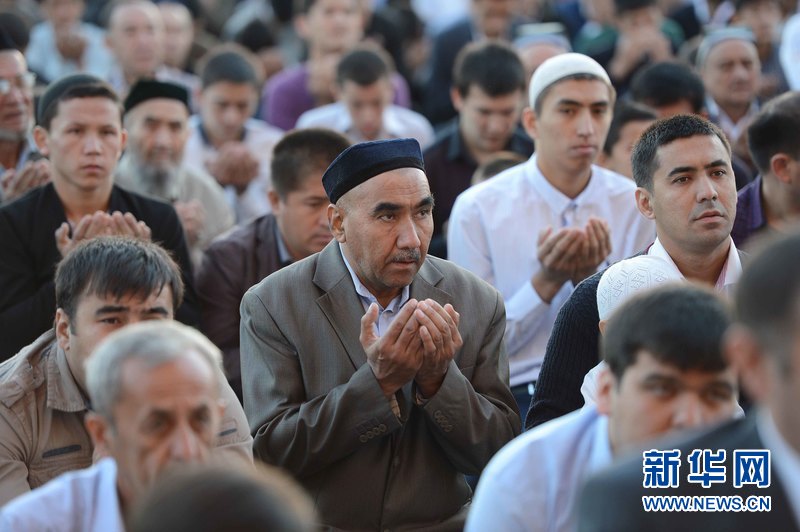 9月24日,在乌兹别克斯坦首都塔什干哈斯特·伊玛姆建筑群清真寺广场,人们参加古尔邦节礼拜。当天,乌兹别克斯坦各地庆祝伊斯兰教传统节日古尔邦节。“古尔邦节”亦称“宰牲节”,是伊斯兰教三大节日之一。 新华社记者沙达提 摄