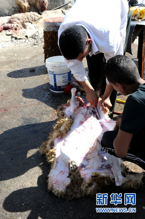 9月24日,约旦首都安曼,工人为市民屠宰羊只。当日是穆斯林宰牲节,这一天,穆斯林们要穿新衣、宰牲口,将肉食不仅留给自家,也要分送给穷人,确保所有的穆斯林都有一份肉食。宰牲节是伊斯兰教重要节日。在伊斯兰历每年的12月10日。该节日是为了纪念先知易卜拉欣忠实执行真主命令,向安拉献祭自己的儿子,而后又奉安拉之名用羊羔代替这一事件。新华社记者蒋少清 摄