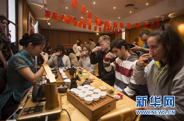9月25日,全球“孔子学院日”来临之际,阿根廷布宜诺斯艾利斯大学孔子学院搞起来中文文化的“一站式体验”,茶艺、书法、剪纸、京剧、武术等中国文化精髓齐上阵,平日只能“水中望月”的阿根廷“中国迷”,此时可以拿起毛笔写书法,画上脸谱学京剧,端起茶杯品茗香,跟着大师学太极,亲身体验和面对面交流打破了中国文化的迷思,参加者无不伸出大拇指点赞叫好。新华社发(马丁·萨巴拉摄)