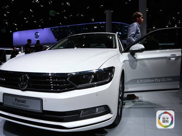图为法兰克福国际车展上一名观众参观一辆大众帕萨特柴油车(新华社发)