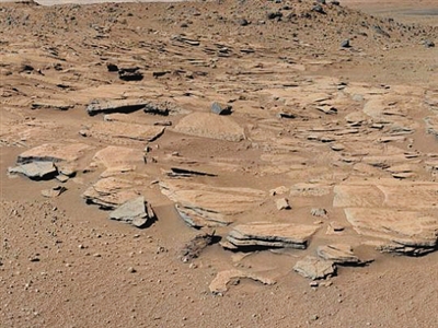 拍摄者:“好奇号”火星车(NASA) 2014年8月NASA发布一批拍摄于盖尔陨石坑的夏普山的岩石断面图,夏普山极有可能是数百万年前大型河床的沉积物累积。