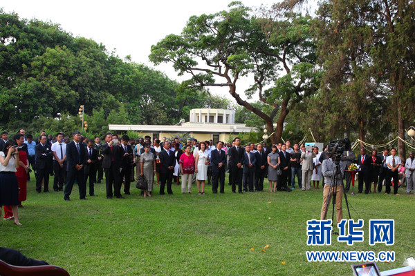 新华网卢萨卡9月28日(记者彭立军)中国驻赞比亚大使馆28日晚举行中华人民共和国成立66周年国庆招待会。驻赞比亚大使杨优明、赞比亚开国总统肯尼思·卡翁达、赞比亚外交部副部长雷福德·马布鲁、在赞华侨华人、中资机构代表及多国使馆(团)外交官等两百余人出席。