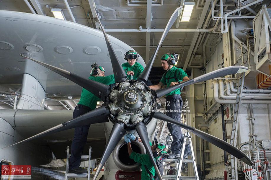 擦拭鹰眼!美航母地勤维护E-2预警机【高清组图】