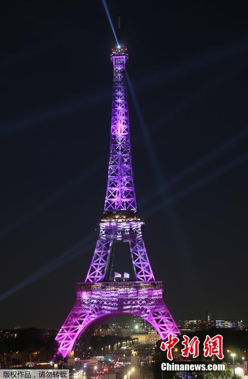 法国埃菲尔铁塔亮起粉色灯光 倡导对抗乳腺癌【组图】