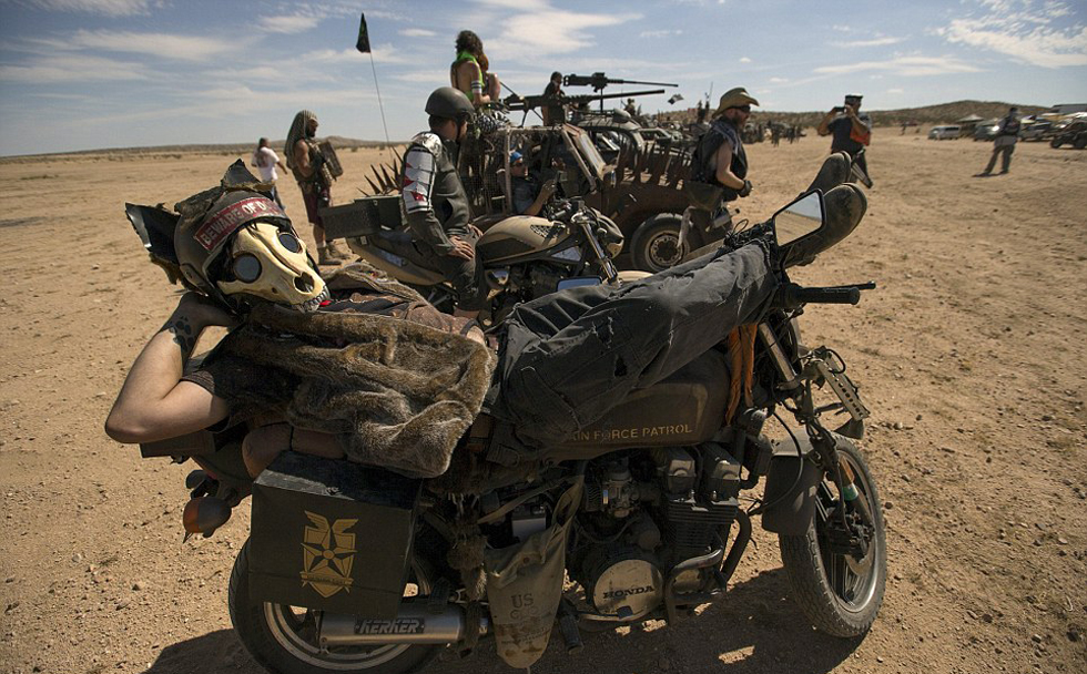 一位影迷正躺在摩托车上休息。(网页截图)