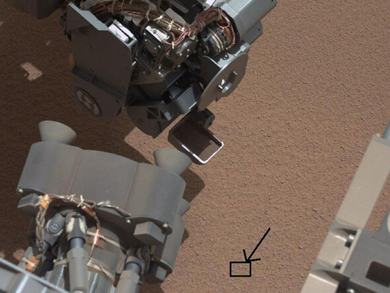 “好奇”号探测器本身也成为火星上怪异物体的源头。2012年,“好奇”号在火星表面发现一块发光物体,与周围环境截然不同。但美国宇航局最终解释称,它实际上只是“好奇”号本身掉落的一小块塑料。(网页截图)