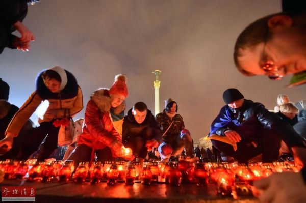 资料图片:乌克兰基辅,乌克兰民众悼念基辅暴力冲突。