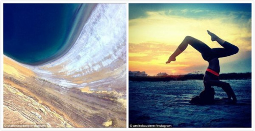 比如,一起晒海景:左图是凯利拍摄的哥斯达黎加景色;右图是科迪拉在海滩上做瑜珈。
