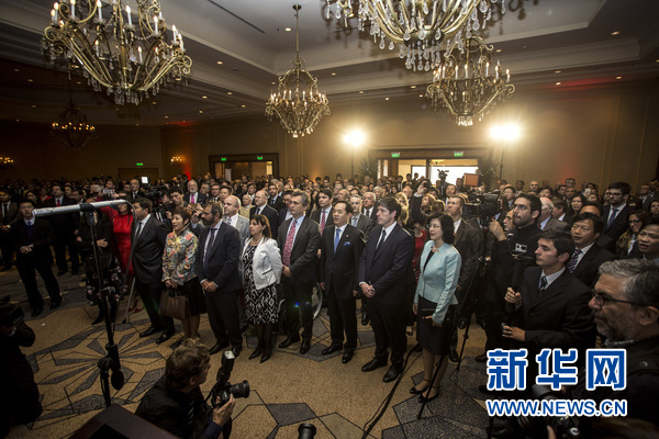 中国驻阿根廷大使杨万明致辞,向来宾介绍了中国当前的政治经济形势,阐述了中国政府持续推进改革开放的政策立场,表达了中国政府通过互利合作与世界其他国家扩大共赢的良好愿望。