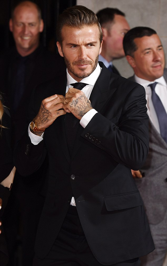 在拍照期间,贝克汉姆调整自己的领带以便拍出完美的照片